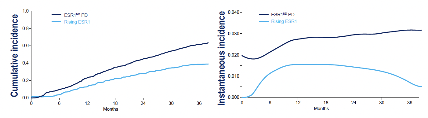 Figure 4 – PADA-1 : incidence cumulative et instantanée des bESR1mut.