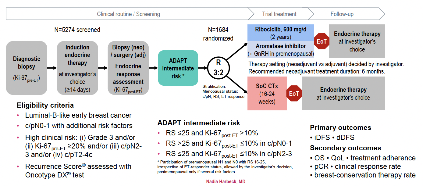 • Harbeck N, Gluz O, Christgen M et al. Ribociclib + endocrine treatment vs SoC chemotherapy in intermediate risk HR+/HER2- early breast cancer: Results from the neoadjuvant cohort of the phase-III WSG ADAPTcycle – trial. Ann Oncol 2025 ; 10 : 189O.