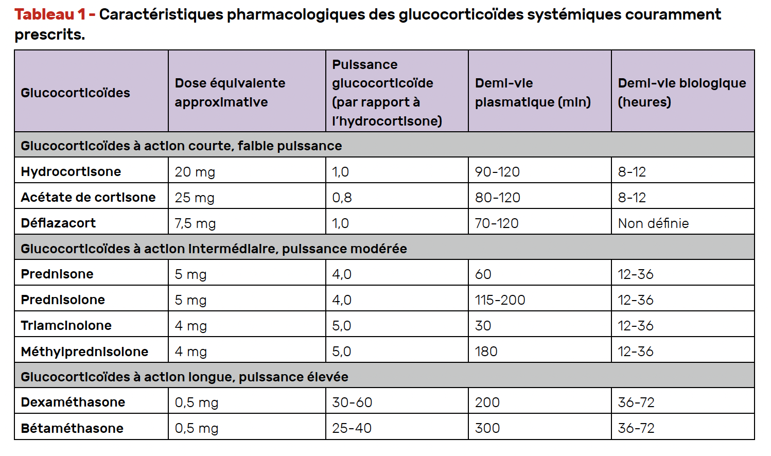 Des exemples d’adaptations des doses de GC sont proposés dans le tableau 3.