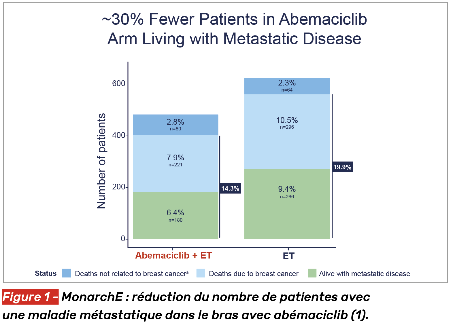 Dans l’essai MonarchE avec l’abémaciclib, le haut risque était défini par les critères suivants : pN2 (≥ 4N+) ou pN1 (1 à 3N+) avec au moins un des critères additionnels tels qu’un grade 3, une taille > 50 mm ou un ki67 ≥ 20 %.